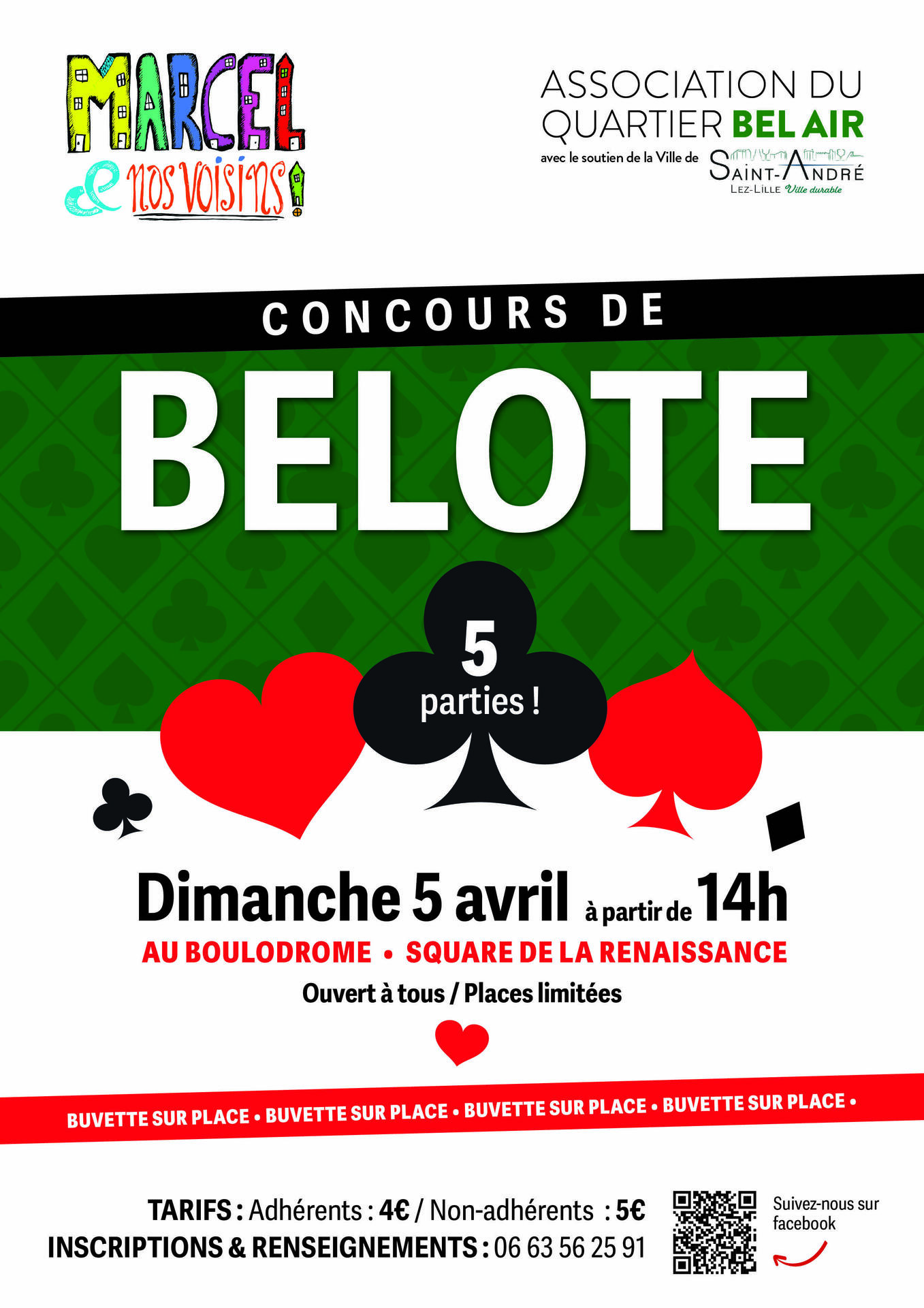 4 avril : Concours de Belote par l'association Marcel et nos Voisins