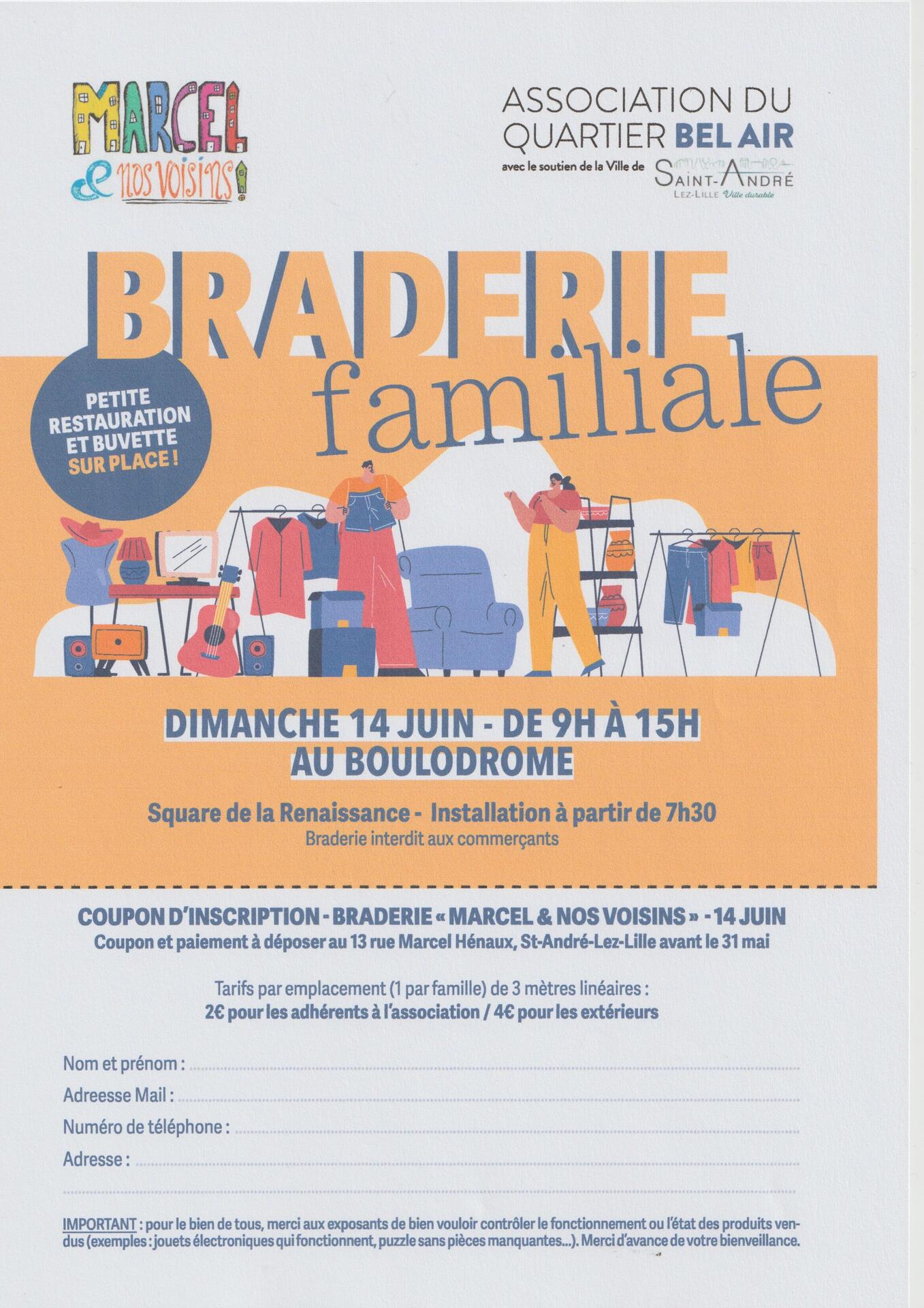 14 juin : Braderie familiale par l'association Marcel et nos voisins