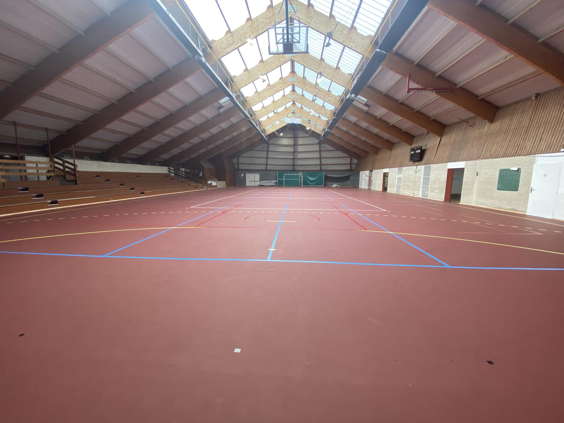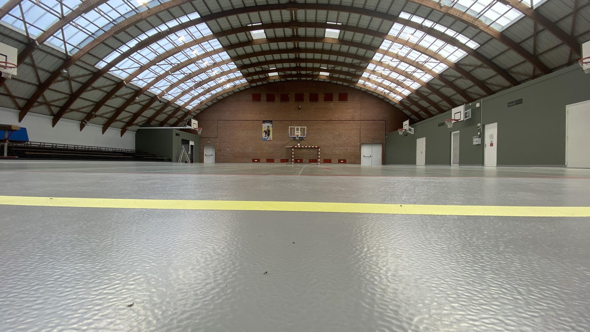 La salle bénéficie d’une réhabilitation complète : accessibilité PMR améliorée, aménagement des sanitaires, rénovation des vestiaires, du système de ventilation et mise en peinture. Un nouveau sol assure plus de stabilité et de sécurité, et permet des conditions optimales pour la pratique du basket et de bien d’autres sports !